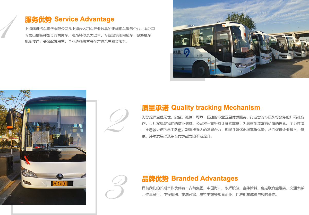 上海廷進汽車租賃有限公司是上海步入租車行業較早的正規租車服務企業,本公司專營出租各種型號的商務車、考斯特以及大巴車。專業提供市內包車,旅游租車,機場接送,會議配套用車,企業通勤班車等全方位汽車租賃服務。